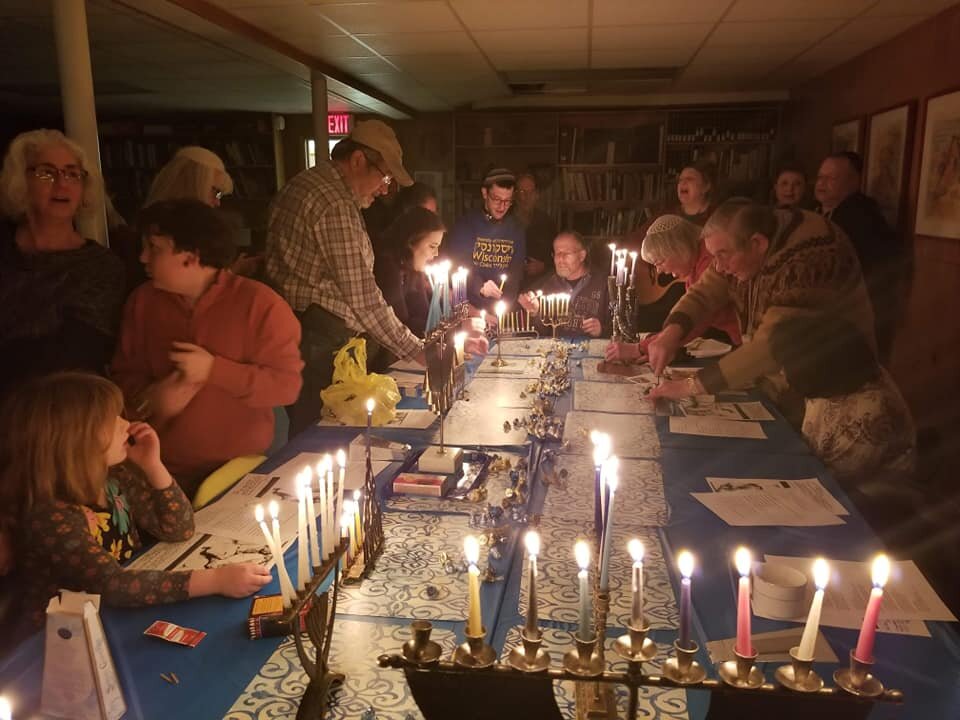 Most of Jewish worship is followed by a meal of some sort. Whether it’s a simple Oneg after the Friday night shabbat service, or a full Kiddush meal on Saturday, we have fabulous food. Our synagogue boasts a kosher dairy kitchen. This means that the only food that can come in or be made there must be kosher and must be dairy or parve based. We also usually have vegan and/or gluten free options for those of our members who prefer that. Along with our regular meals, we often also have holiday meals, most notably for Passover and Chanukah. Check our events page for more information.